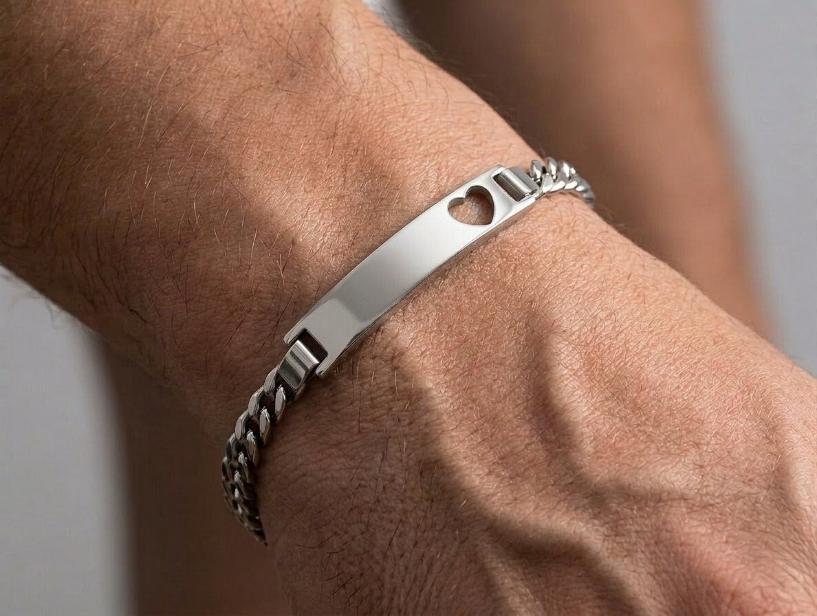 Gourmette en acier inxydable avec un petit coeur ajouré vous pourrez y inserer des poils d'animaux, cheveux, crins, ou cendres et faire graver le prénom de l'être cher.